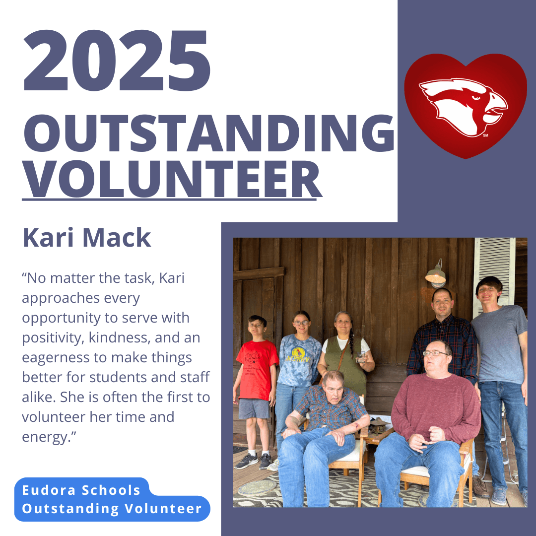 Our volunteers are community members, parents, college students, high school students, business partners, and community organizations. Our volunteers offer their support to Eudora Schools initiatives including, Cardinal LinkUP Mentor Program, enrichment programs, in libraries, and in classrooms.